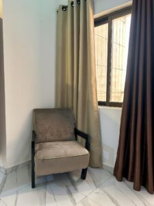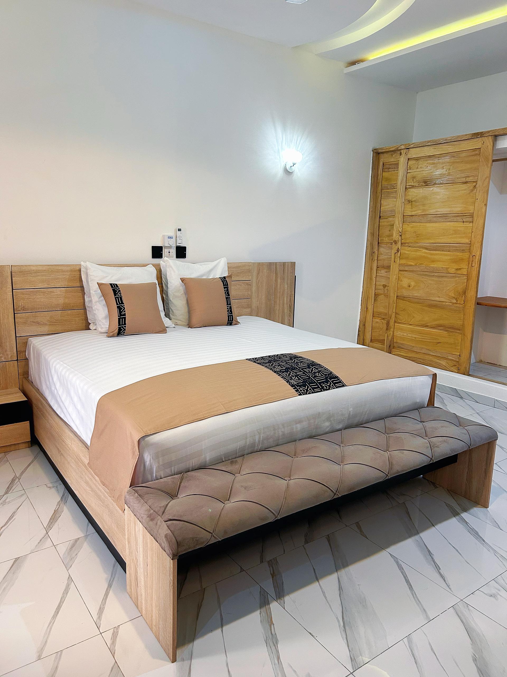 mart suite SIKA 28 m² – sans dressing – balcon • Style épuré, lumineux, inspiré des reines guerrières du Dahomey • Idéal pour un séjour court ou professionnel